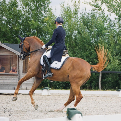 Tara den Hartog successfully made their debut in the ZZ-licht dressage class (advanced level / 4th level) between the warmblood horses by scoring two promotion points at the ‘meetmoment’ today!